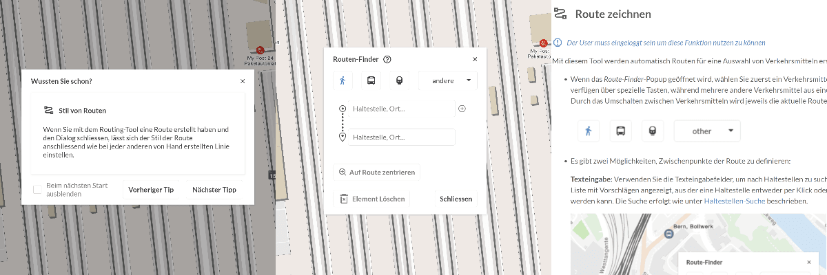 Die Nutzung von mapset ist im Grunde selbsterklärend. Es ist ein wichtiges Ziel unseres Tools, dass alle Funktionen intuitiv verstanden werden, so dass auch Gelegenheitsnutzer ohne Probleme Pläne nach Wunsch erstellen können. Dennoch haben wir gesehen, dass für die Nutzung aller, auch der etwas versteckteren, Funktionen in mapset eine Anleitung hilfreich ist. Deshalb haben wir drei Arten von Hilfen und Anleitungen entwickelt.